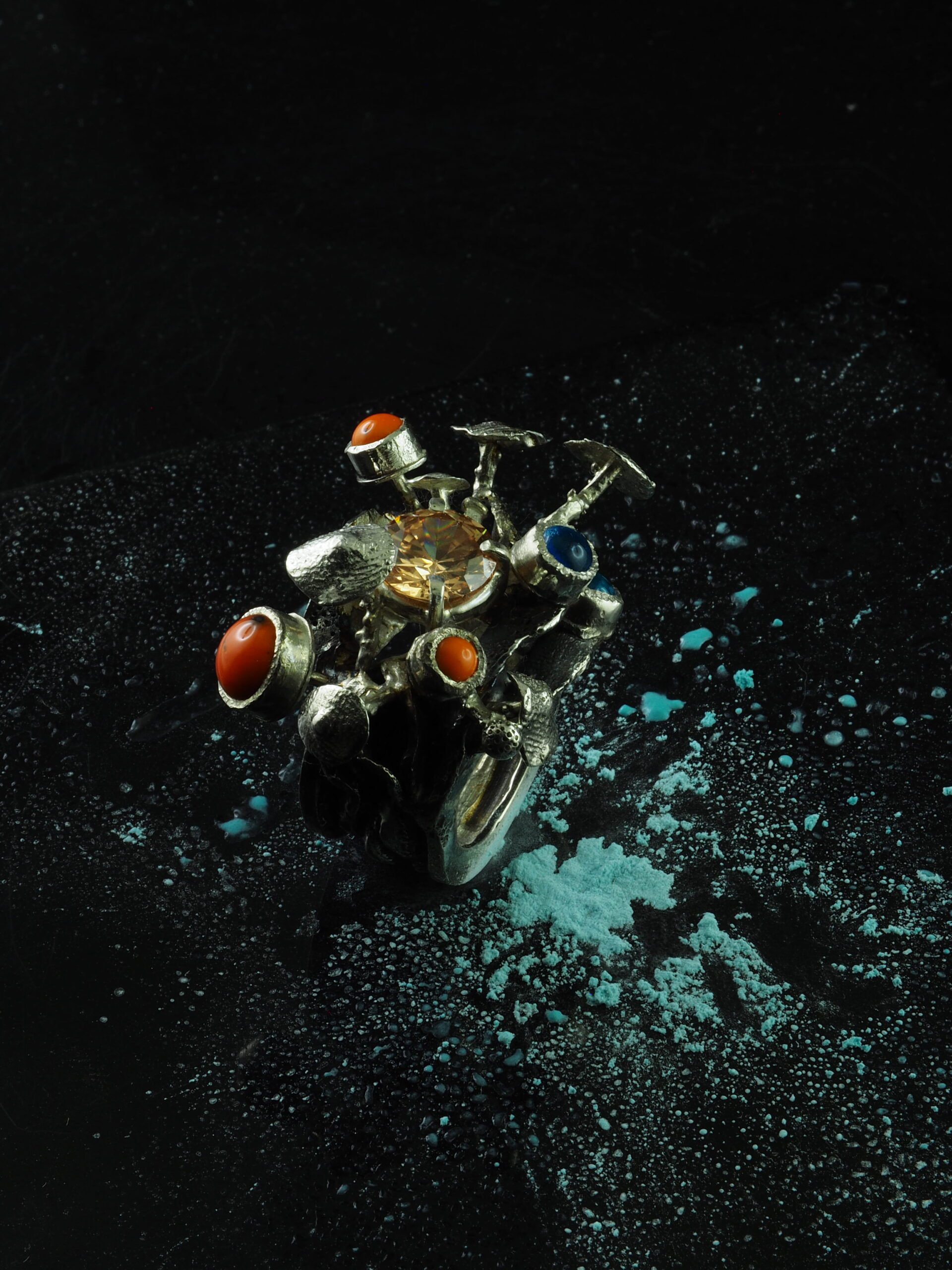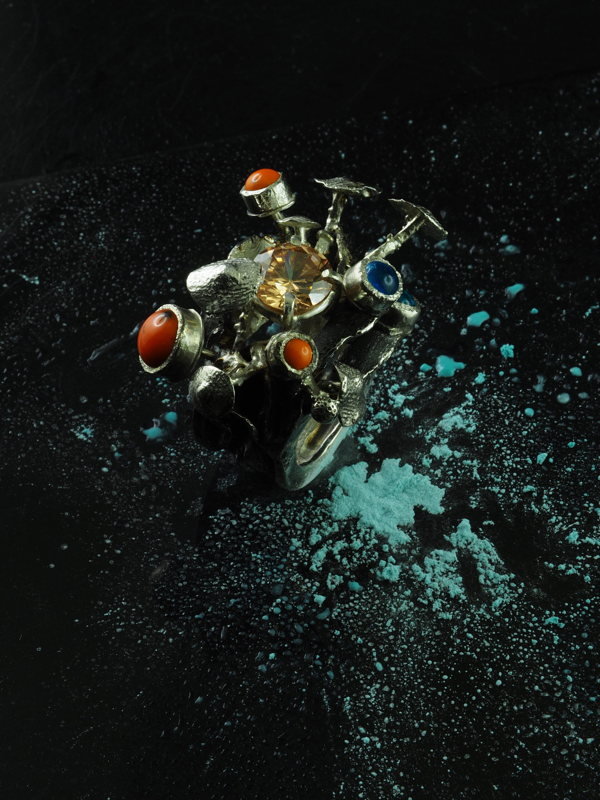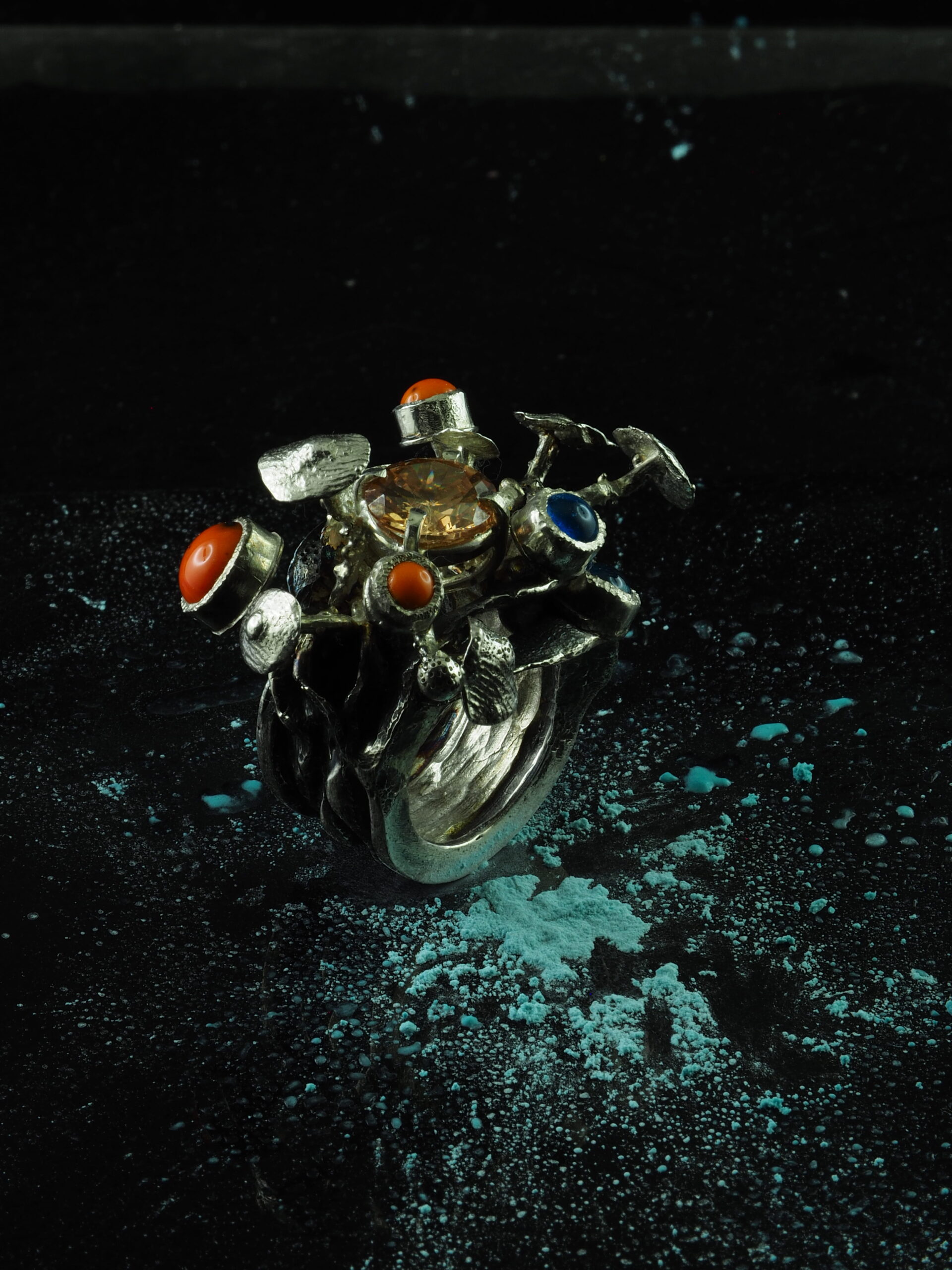 The Ocean Reef ring in 925 sterling silver is a unique creation, inspired by the beauty and mystery of marine reefs. Adorned with natural coral and turquoise stones, this ring brings a touch of color and organic elegance. The intricate design, with fine details, evokes the underwater world and the diversity of reefs. Each piece is handcrafted, ensuring a unique and special design.