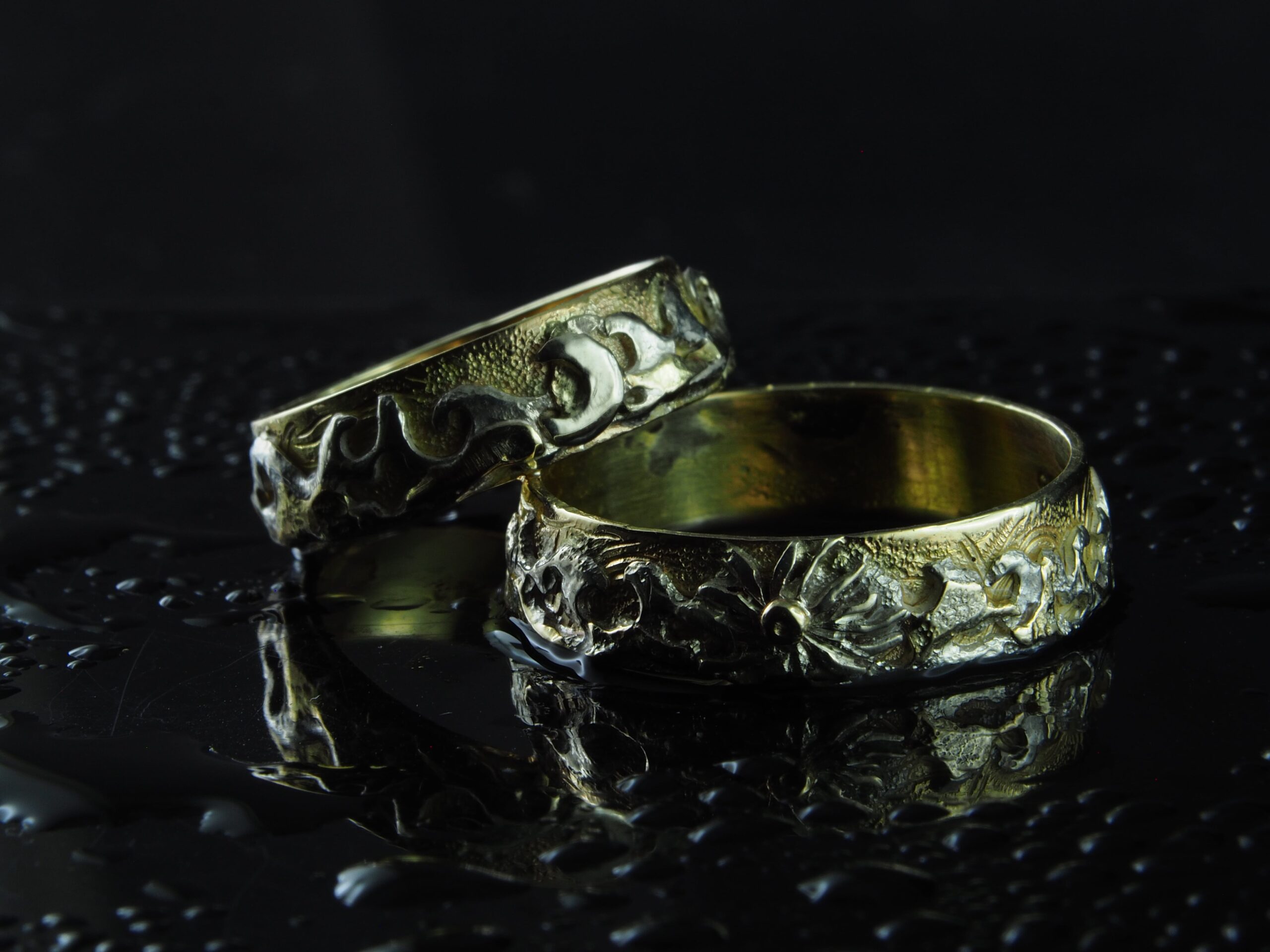 Una dintre verighete poarta simbolul soarelui la rasarit, iar cealalta pe cel al lunii la apus, reprezentand echilibrul perfect dintre inceput si sfarsit.